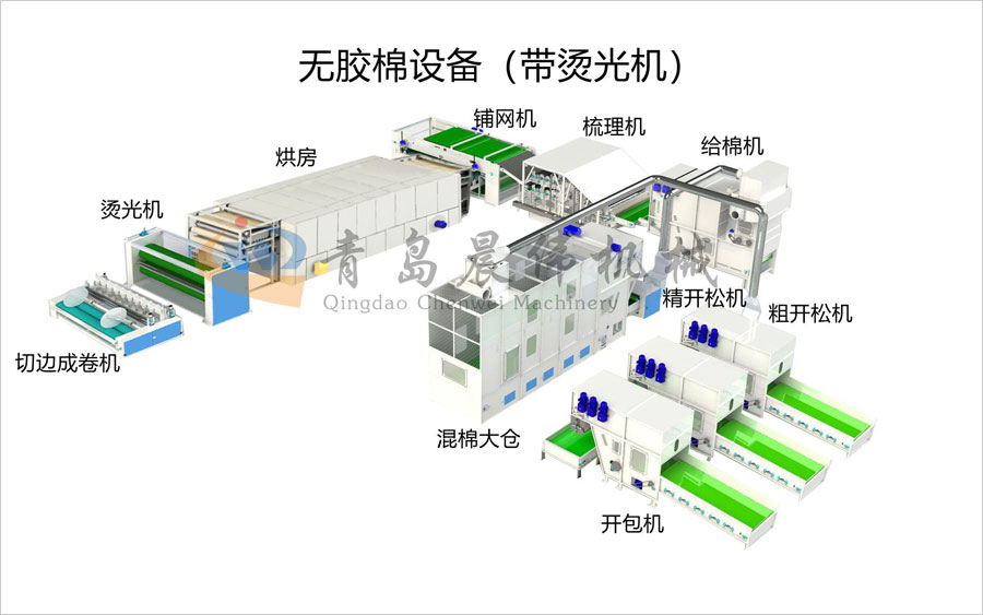 開包機-開松機-振動給棉機-梳理機-鋪網機-烘房-切邊成卷機