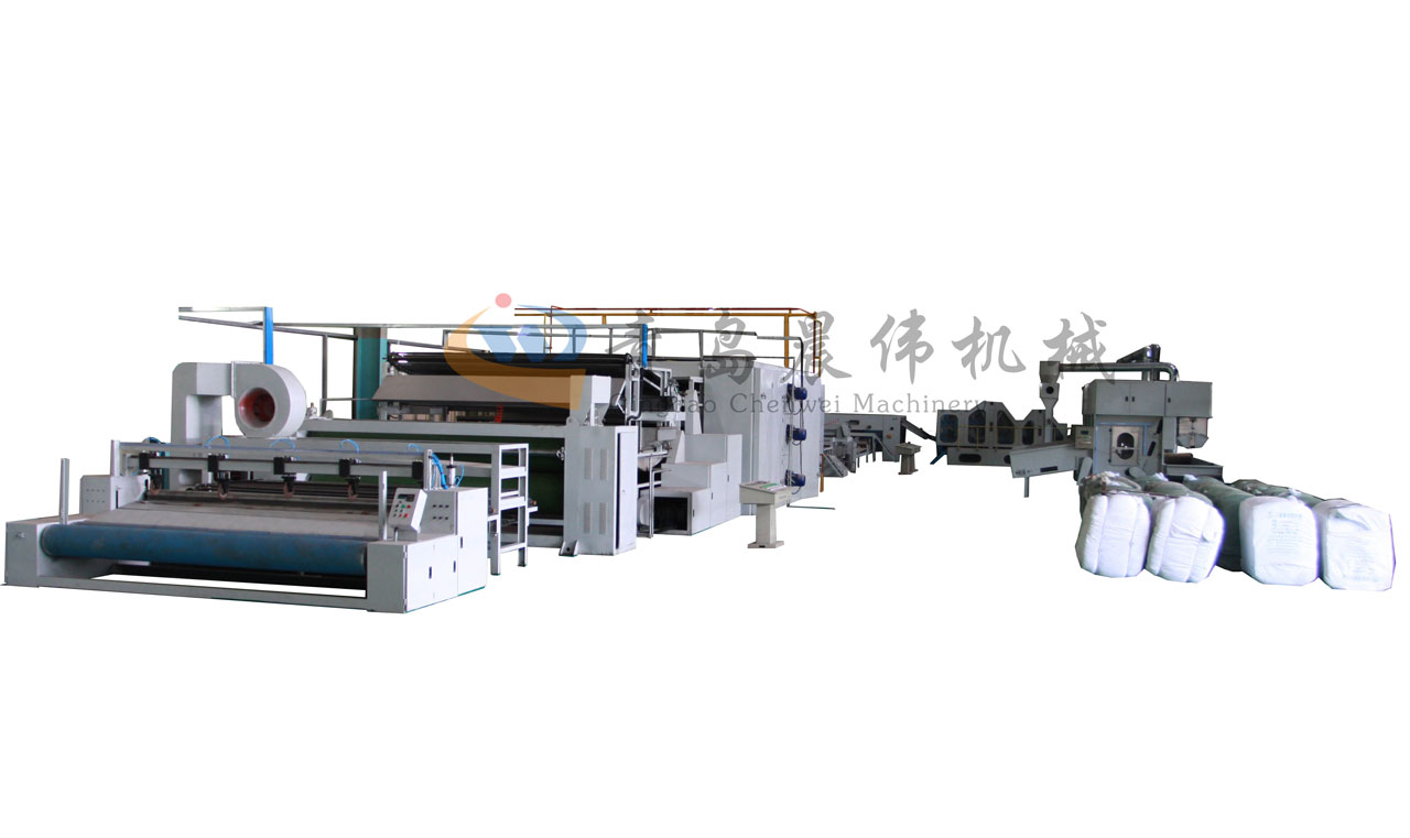開包機(jī)-開松機(jī)-振動給棉機(jī)-梳理機(jī)-鋪網(wǎng)機(jī)-烘房-燙光機(jī)-成卷切片機(jī)