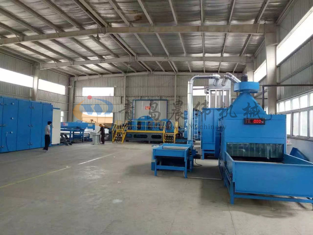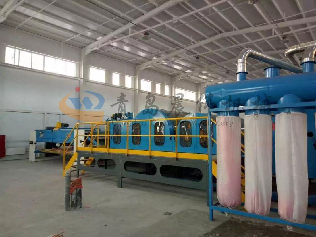 開(kāi)包機(jī)-開(kāi)松機(jī)-振動(dòng)給棉機(jī)-梳理機(jī)-鋪網(wǎng)機(jī)-烘房-成卷切片機(jī)