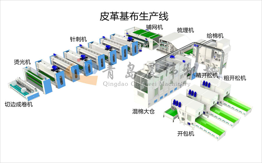 具有皮革基布生產線內部結構無規則,一定的表觀密度,纖維分布均勻,厚度一致,表面平整,耐高溫,拉伸力和剝離力強等特性。