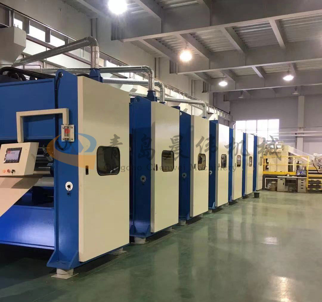 7. CWCQ-切邊成卷機:設備配置3-5把切刀,可根據不同產品的尺寸要求將產品切成不同的規格長度,方便靈活。采用變頻器控制調速當棉層達到一定的規格長度時,數碼記數收卷,切刀自動切斷。收卷輥由收卷電機驅動,收卷速度的控制系統與拉伸機的驅動系統聯網,與拉伸機同步,受張力控制器的反饋控制。展開輥使棉層展平,消除棉層在拉伸應力作用下產生的一些縱向皺紋。