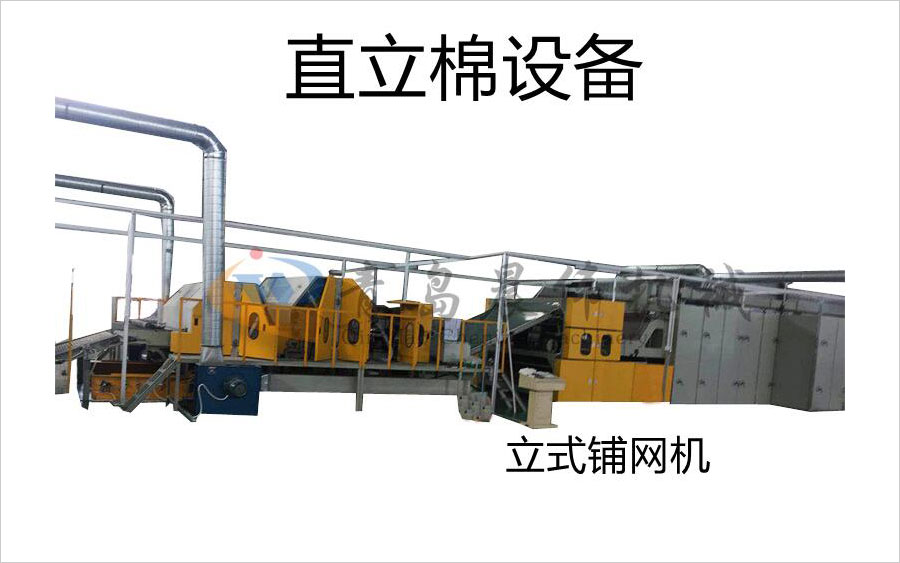 開包機(jī)-開松機(jī)-振動(dòng)給棉機(jī)-梳理機(jī)-立式鋪網(wǎng)機(jī)-烘房-成卷切片機(jī)
