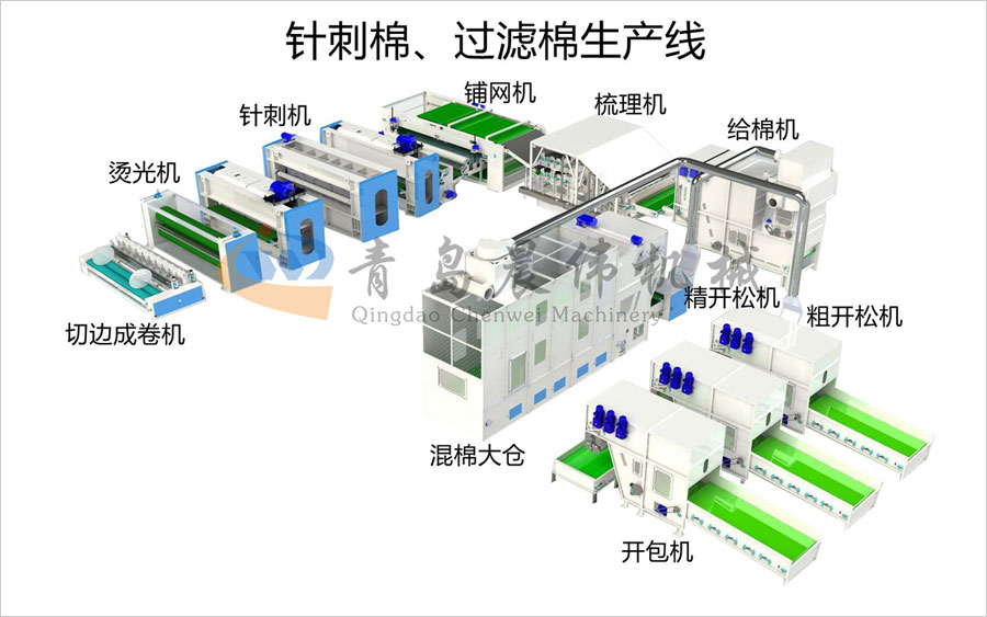 開包機-開松機-振動給棉機-梳理機-鋪網機-針刺機-切邊成卷機
