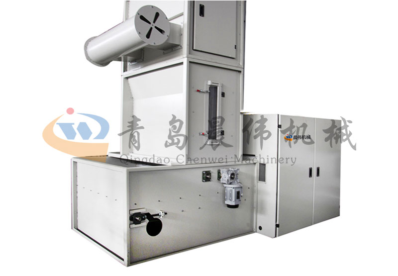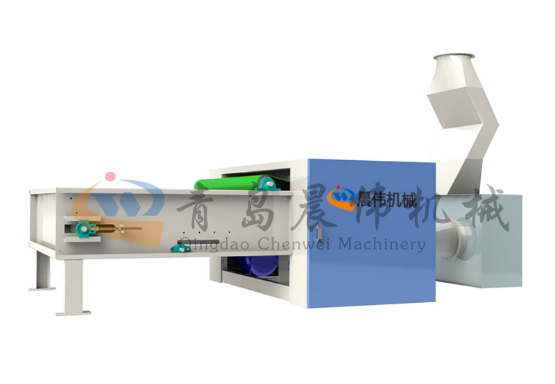 各種不同纖維被放入水平輸送簾,經壓棉輥和對輥羅拉喂入,經輸棉風機以適量的風量輸送纖維原料供后道工作使用;并配備橋式除鐵裝備。