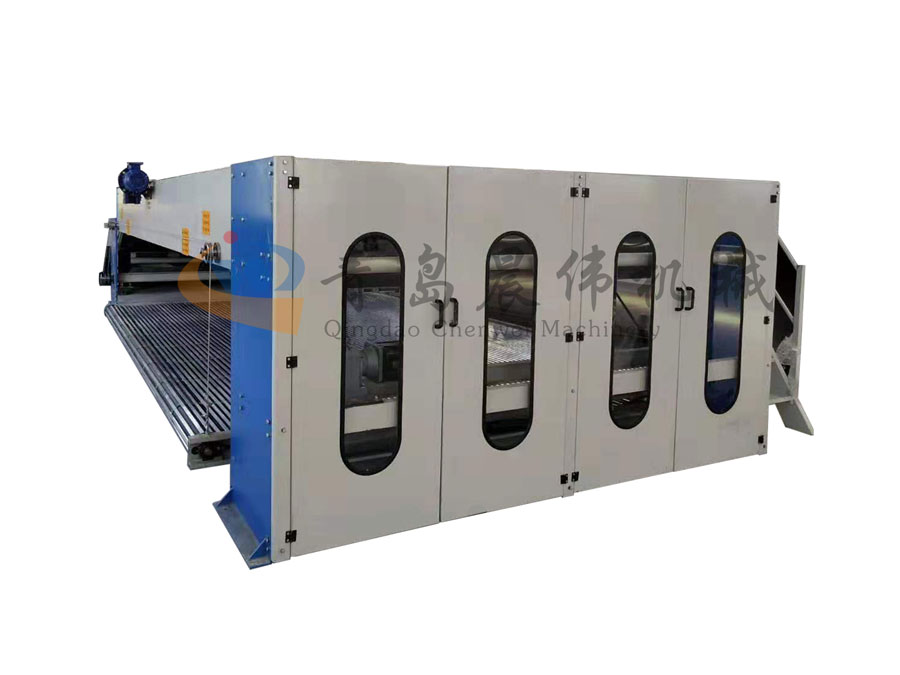 4.夾持式防靜電喂入簾,往復換向運轉平穩,纖網厚薄均勻,輸出簾升降調節方便。