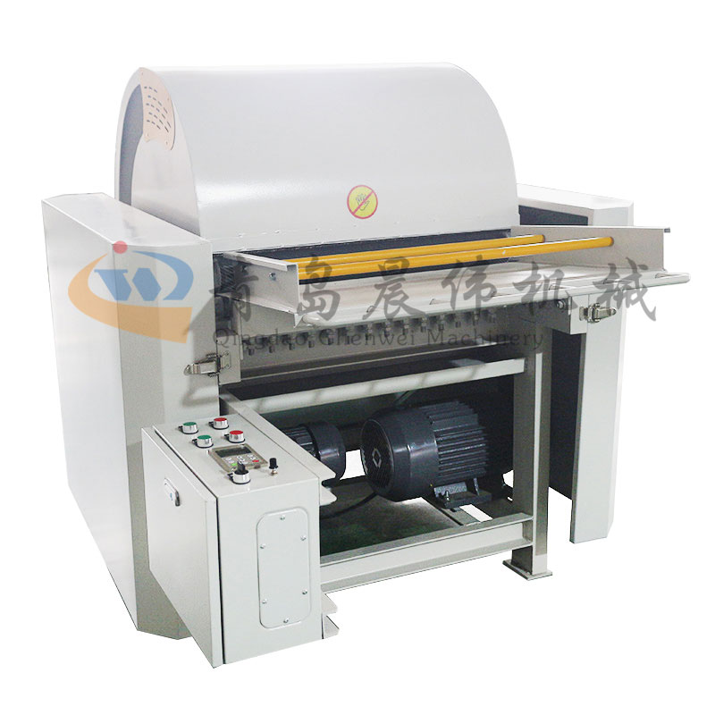 開松機:本機開松效果好,不易纏棉,產量高。把纖維、原料經喂入平簾輸送至喂入羅拉,再由開松輥高速開松后,經輸棉風機以適量的風量輸送纖維原料供后道工作使用